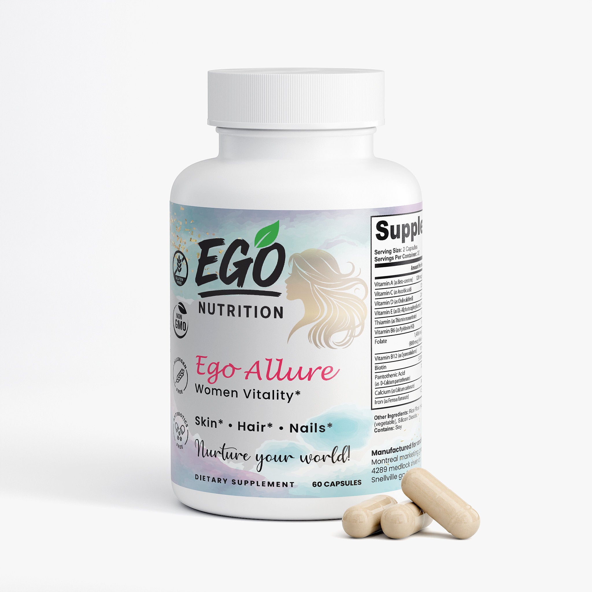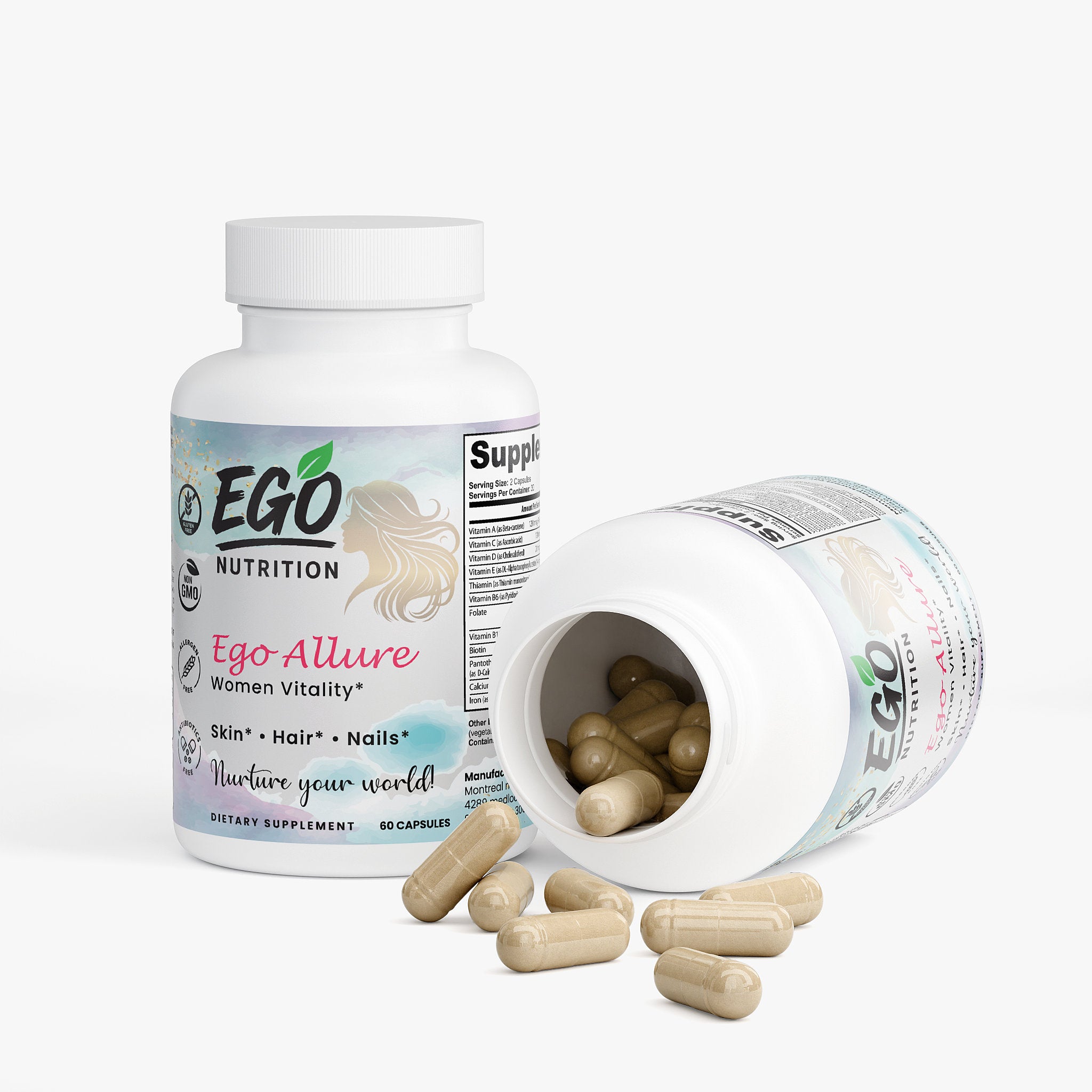Our Hair, Skin, and Nails Essentials supplement is made to give you that natural glow. In combination, Vitamin B6, Folate, and Biotin work together to maintain elastin in the hair, skin, and nails. Elastin is a major component of body tissues, helping them function correctly.*